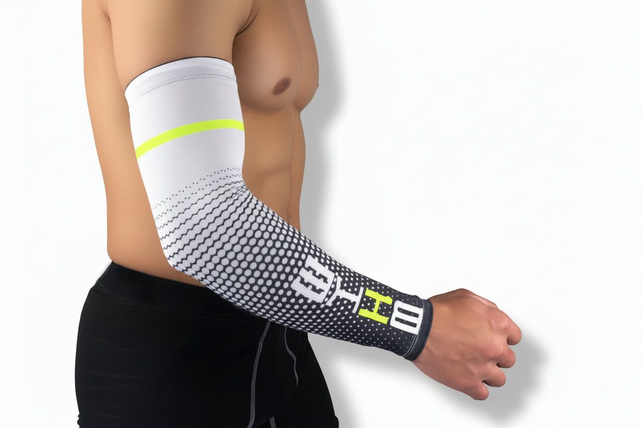 Features: Lycra fabric moisture wicking, elastic compression fit arm temperature protection