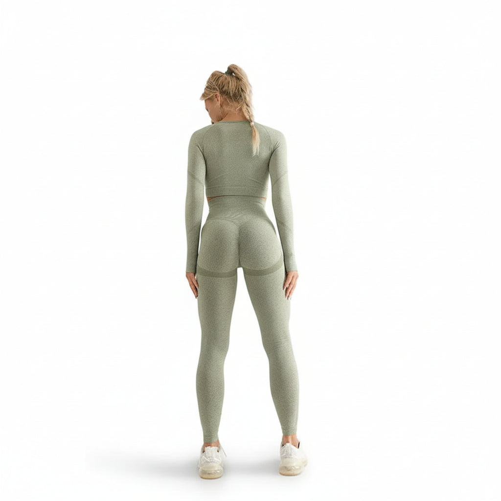 Traje de yoga sin costuras, top y leggins deportivos de mujer