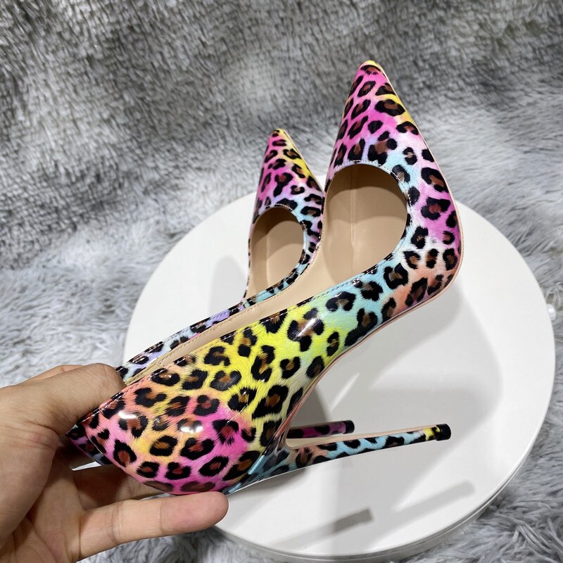 Tikicup - Zapatos de tacón alto con punta puntiaguda y estampado de leopardo rosa brillante para mujer, para fiesta, sexys y cómodos, 8 cm, 10 cm y 12
