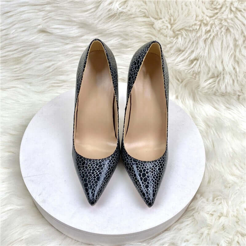 Zapatos de tacón alto con punta puntiaguda y estampado geométrico Tikicup para mujer, de charol negro